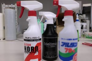 あまり知られていませんがアルコール系除菌剤は使用する箇所に水分がある場合、アルコールの濃度が落ちることで除菌効果が落ちます。ですのでアルコール除菌剤を使うときは使う箇所が濡れていないシーンで使う必要があるのです。